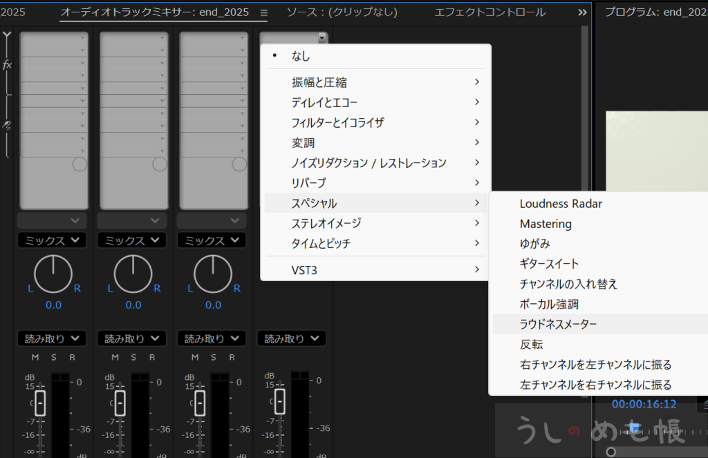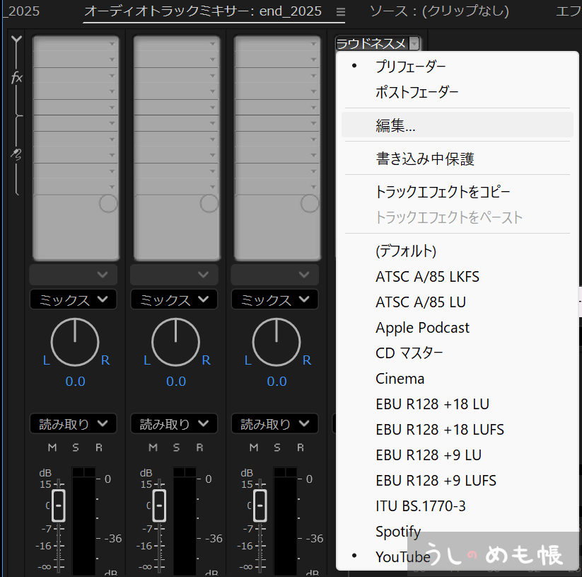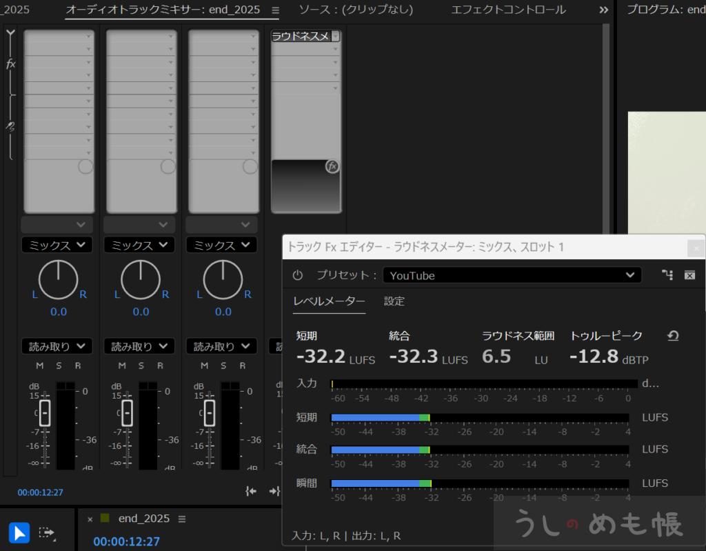 Premiere Pro(Ver25.5.0)でのラウドネスの確認と調整方法