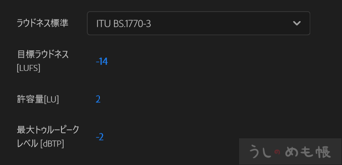 目標ラウドネス -14(テレビ以外は大体これでよさそう)
