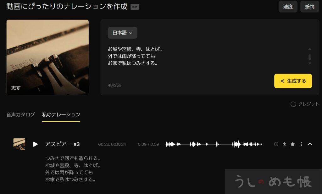 こんな感じで、試してみるだけになりますが、日本語に指定して作成してみると日本語でしゃべってくれます。