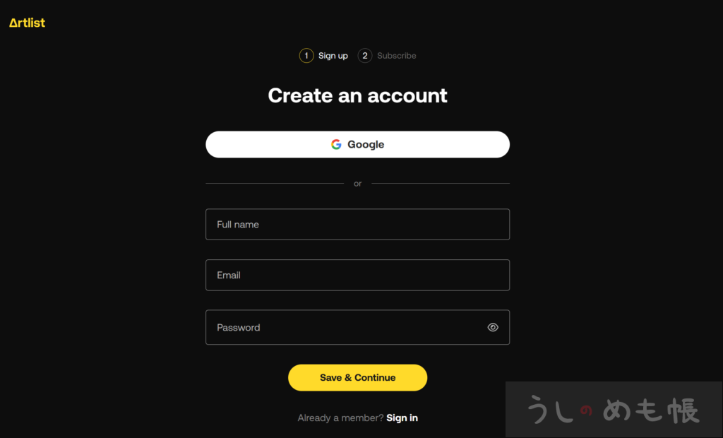 アカウント作成画面に移りますので、Googleアカウントで連携もしくはEmailとパスワードを入力して
