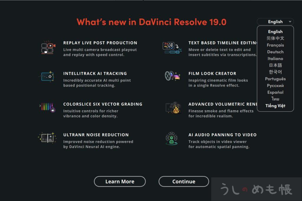 DaVinci Resolveを最初にインストールするときにも言語が選べるようになっています。