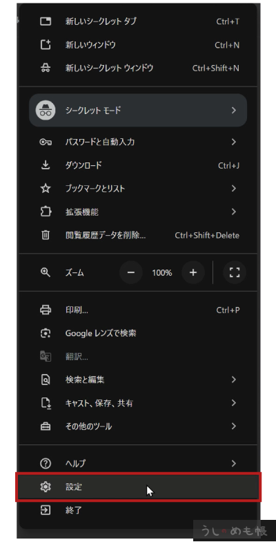 1.chromeの設定を開く