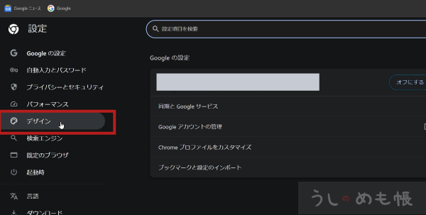 左のメニューから「デザイン」をクリック